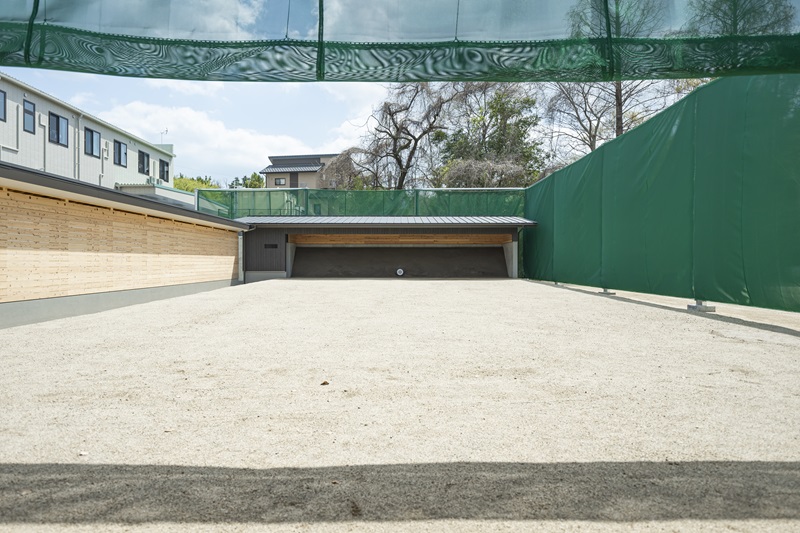 また、安全性を確保するため、矢道に矢よけネット、弓道場の周囲2面に高さ5m、総延長46mの防矢ネットを設け、的場の看的所の覗き窓にはアクリルパネルを取り付けています。